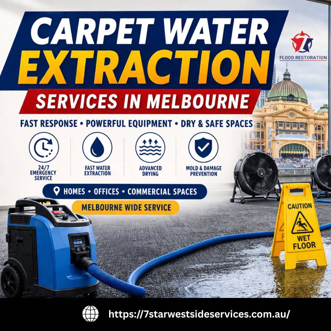 Need urgent carpet water extraction service in Melbourne? 7 Star West Side Services provides quick and professional water removal solutions for homes and businesses. Whether your carpet is damaged by flooding, leaks, or spills, our expert team uses advanced equipment to extract water and restore your carpet efficiently.